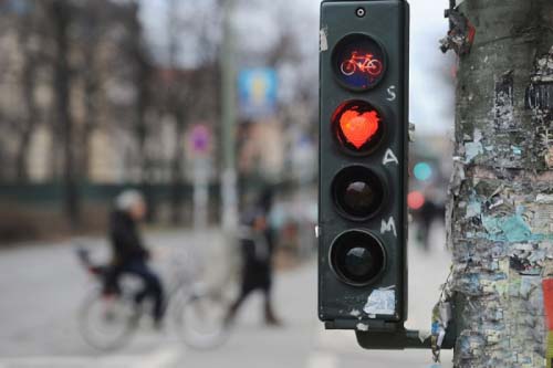 2、柏林街頭的卡通交通信號燈與心形創意交通信號燈