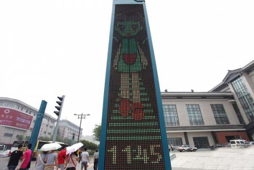 13、西安最萌LED紅綠燈,2012年7月17日,西安最萌LED紅綠燈亮相北大街。這個紅綠燈與以往不同,卡通人物為一個小女孩,綠燈亮時,小女孩倒計時報數,紅燈亮時,小女孩播送文明提示語。卡通紅綠燈的出現得到了很多市民的贊許,并親切的稱之為西安“最賣萌”紅綠燈。