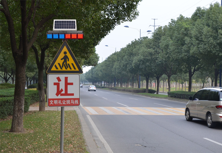 在沒有交通信號燈的危險路段安太陽能警示燈